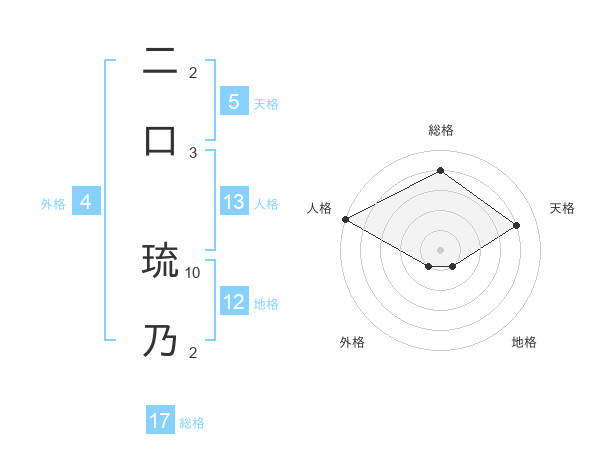二口 琉乃さんの総格は17画の4点!