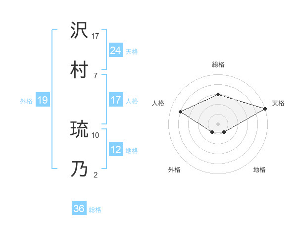 沢村 琉乃さんを姓名の画数から五運を鑑定