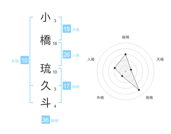 小橋 琉久斗さんを姓名の画数から五運を鑑定