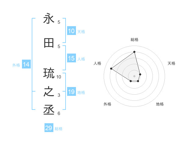 永田 琉之丞さんを姓名の画数から五運を鑑定
