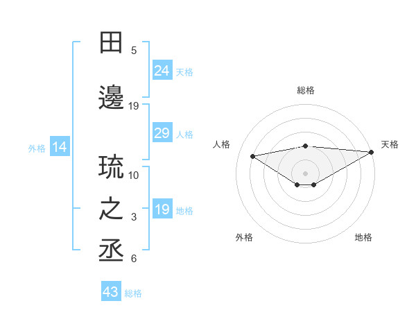 田邊 琉之丞さんを姓名の画数から五運を鑑定