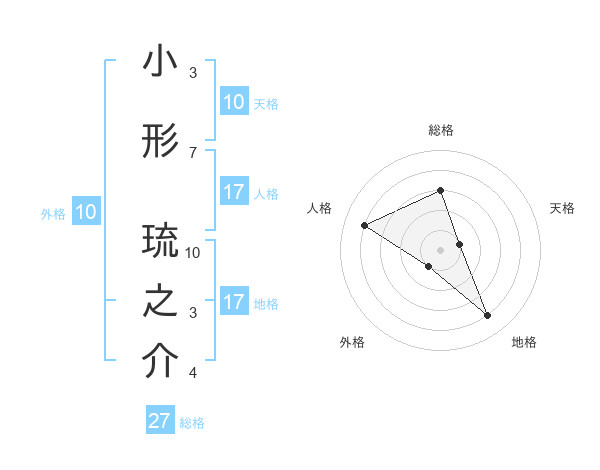 小形 琉之介さんの総格は27画の3点!