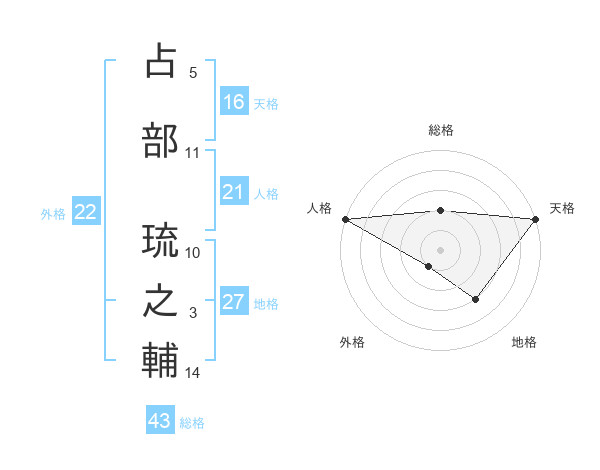 占部 琉之輔さんを姓名の画数から五運を鑑定