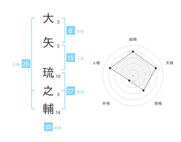 大矢 琉之輔さんを姓名の画数から五運を鑑定