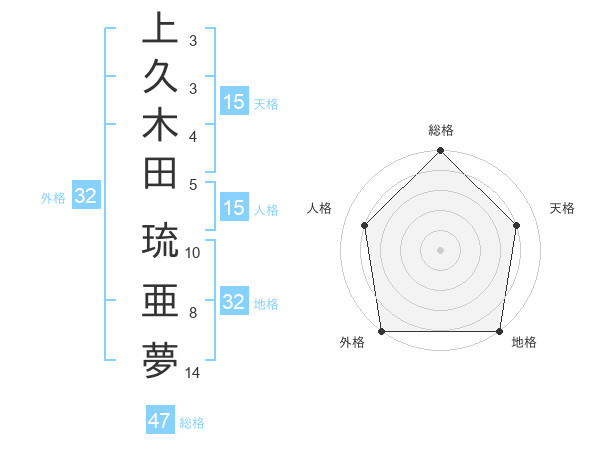 上久木田 琉亜夢さんを姓名の画数から五運を鑑定