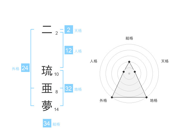 二 琉亜夢さんの総格は34画の2点!