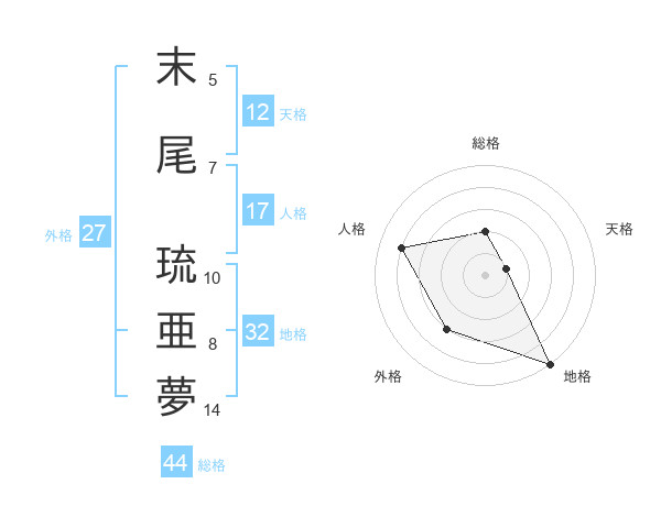 末尾 琉亜夢さんの総格は44画の2点!