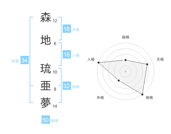 森地 琉亜夢さんの総格は50画の2点!