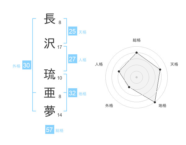 長沢 琉亜夢さんを姓名の画数から五運を鑑定