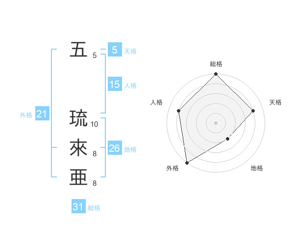 五 琉來亜さんの外格は21画の5点!