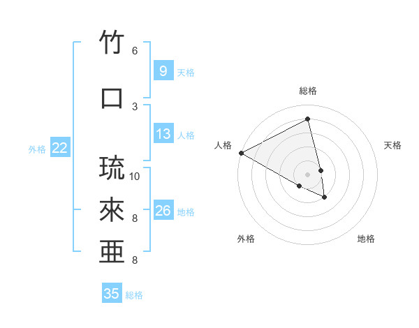 竹口 琉來亜さんを姓名の画数から五運を鑑定