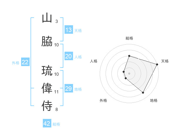 山脇 琉偉侍さんの総格は42画の3点!