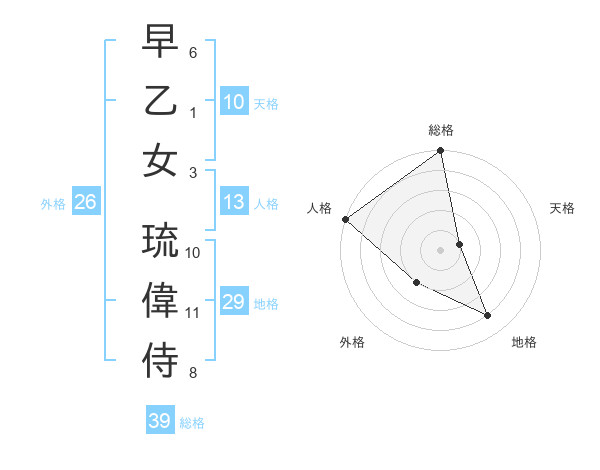早乙女 琉偉侍さんを姓名の画数から五運を鑑定
