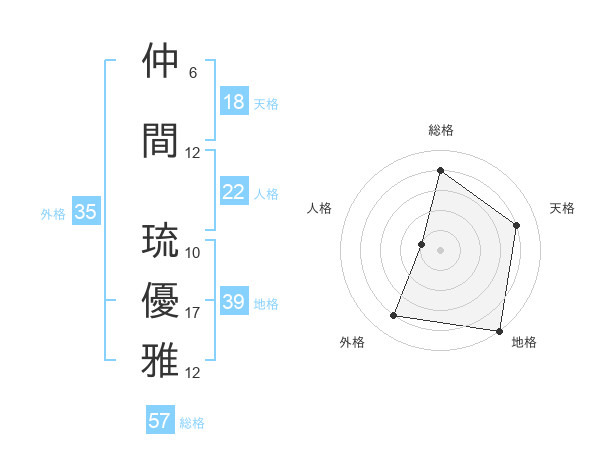 仲間 琉優雅さんを姓名の画数から五運を鑑定