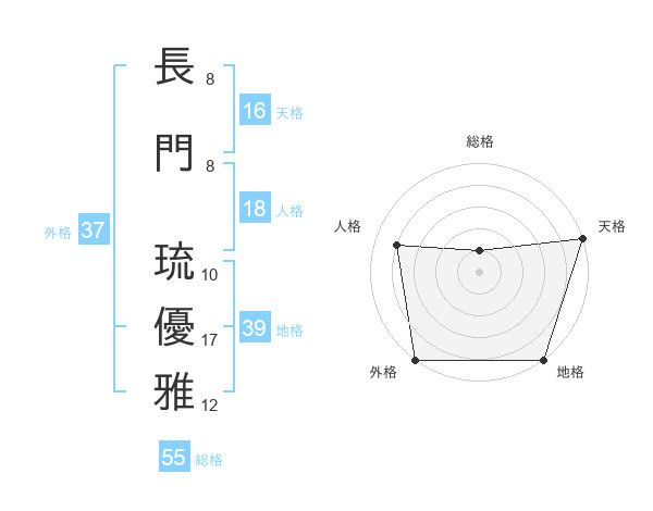 長門 琉優雅さんの総格は55画の1点