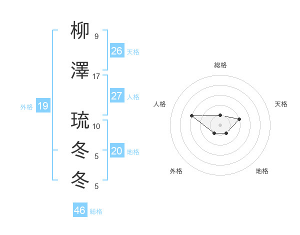 柳澤 琉冬冬さんを姓名の画数から五運を鑑定