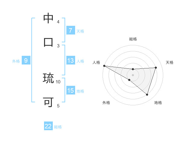 中口 琉可さんの総格は22画の1点!