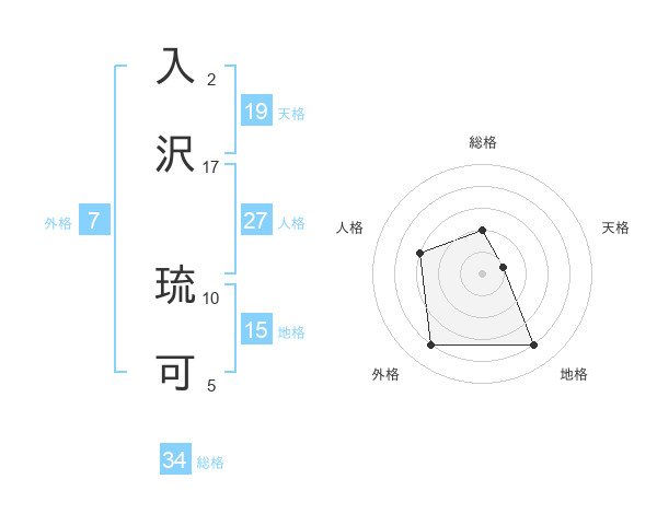 入沢 琉可さんの天格は19画の1点!