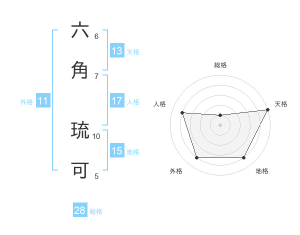 六角 琉可さんの総格は28画の1点!
