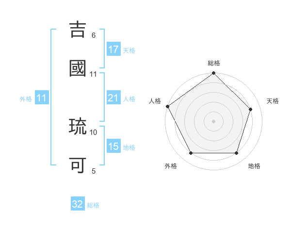 吉國 琉可さんを姓名の画数から五運を鑑定