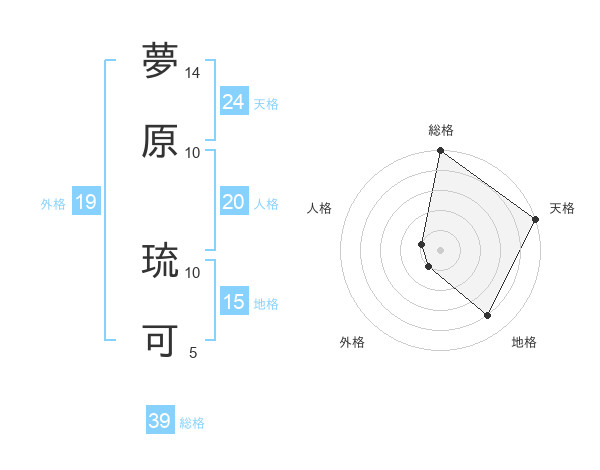 夢原 琉可さんの総格は39画の5点!