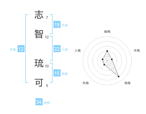 志智 琉可さんの総格は34画の2点!