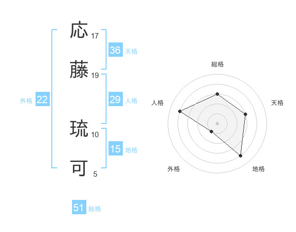 応藤 琉可さんの総格は51画の3点!