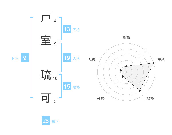 戸室 琉可さんを姓名の画数から五運を鑑定