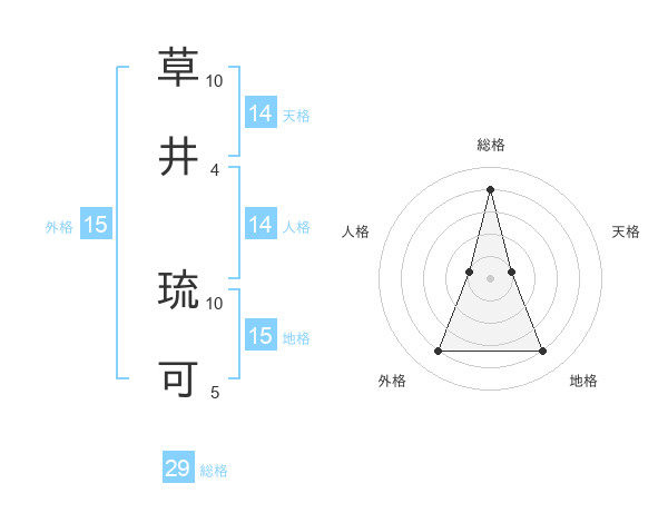 草井 琉可さんの総格は29画の4点!
