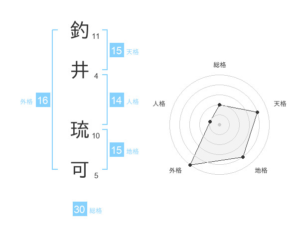 釣井 琉可さんの天格は15画の4点!