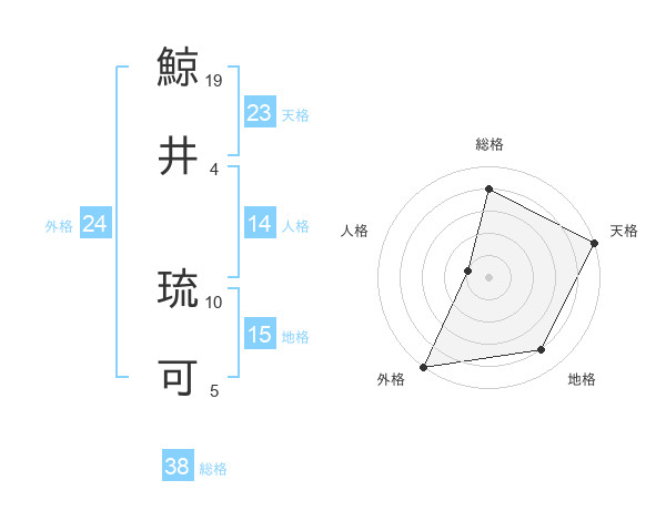 鯨井 琉可さんの総格は38画の4点!