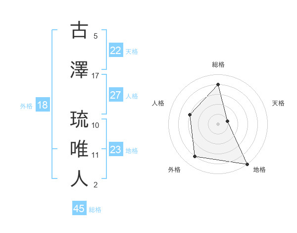 古澤 琉唯人さんを姓名の画数から五運を鑑定