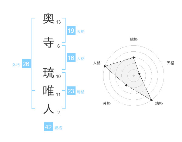奥寺 琉唯人さんを姓名の画数から五運を鑑定