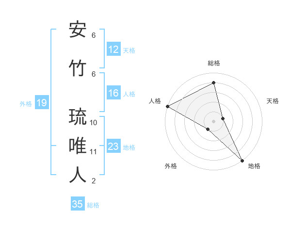 安竹 琉唯人さんの総格は35画の4点!