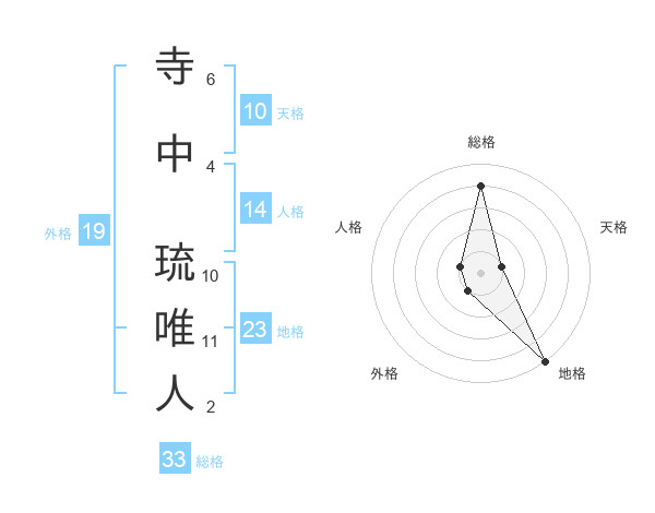 寺中 琉唯人さんの総格は33画の4点!