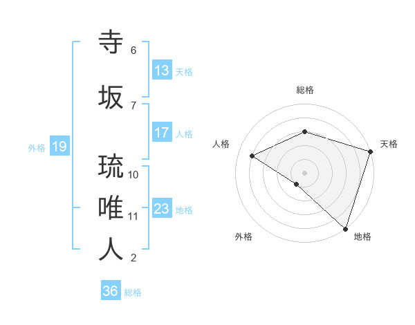 寺坂 琉唯人さんの天格は13画の5点!