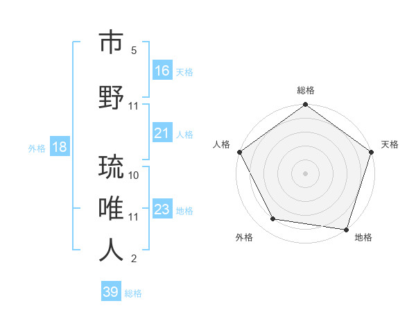 市野 琉唯人さんを姓名の画数から五運を鑑定
