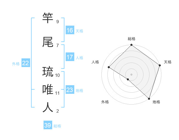 竿尾 琉唯人さんの総格は39画の5点!