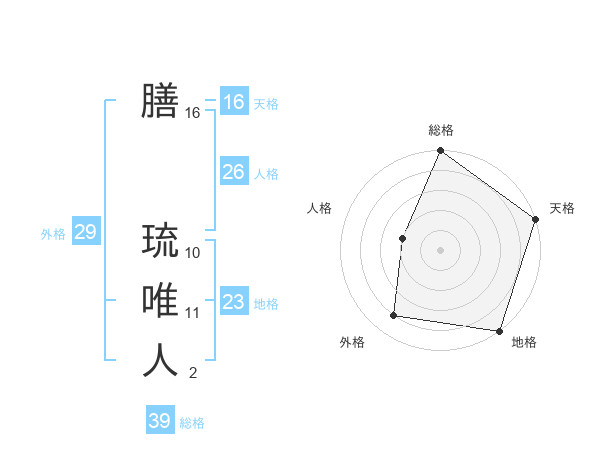 膳 琉唯人さんの総格は39画の5点!