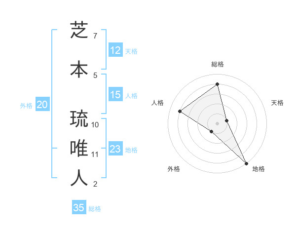 芝本 琉唯人さんの地格は23画の5点!