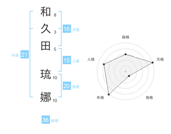 和久田 琉娜さんを姓名の画数から五運を鑑定