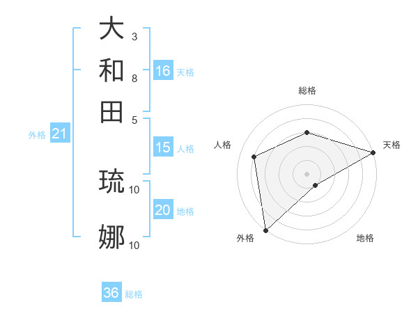 大和田 琉娜さんの天格は16画の5点!