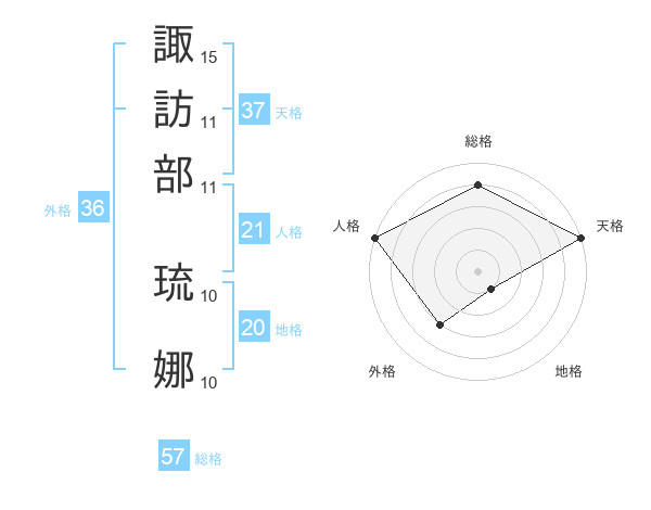 諏訪部 琉娜さんを姓名の画数から五運を鑑定
