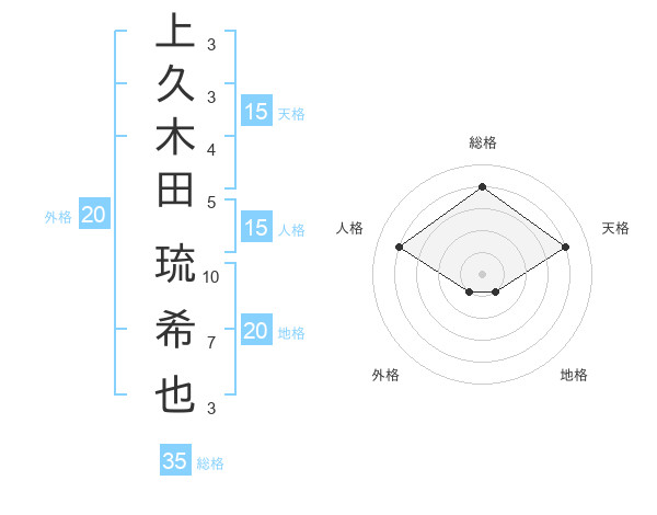 上久木田 琉希也さんを姓名の画数から五運を鑑定
