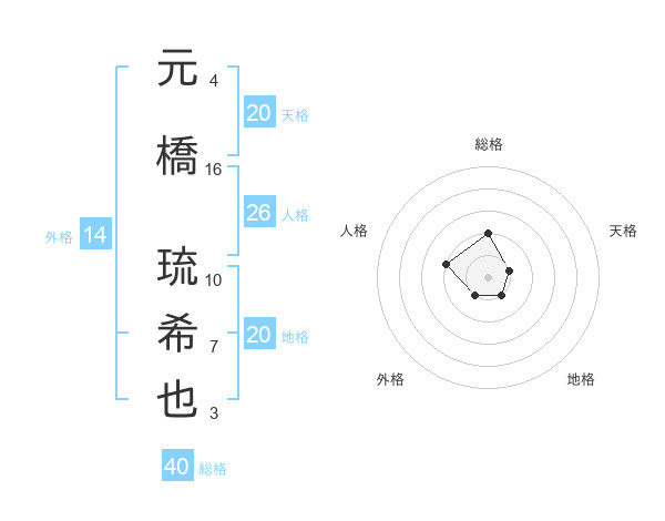 元橋 琉希也さんを姓名の画数から五運を鑑定