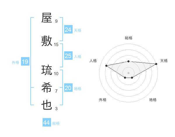 屋敷 琉希也さんの天格は24画の5点!