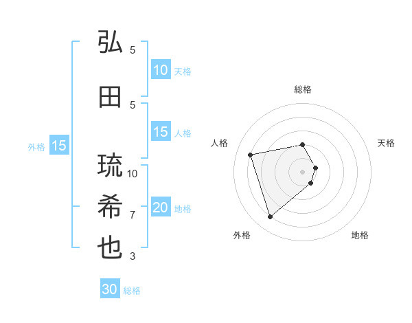 弘田 琉希也さんの外格は15画の4点!