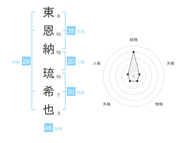 東恩納 琉希也さんを姓名の画数から五運を鑑定