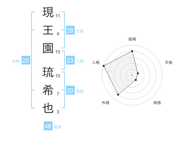現王園 琉希也さんを姓名の画数から五運を鑑定