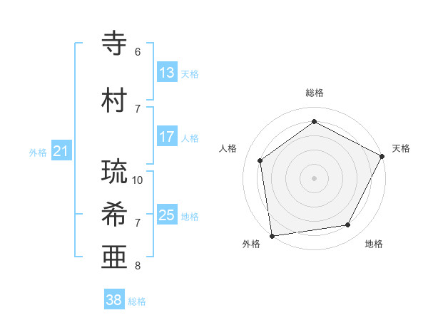 寺村 琉希亜さんの総格は38画の4点!
